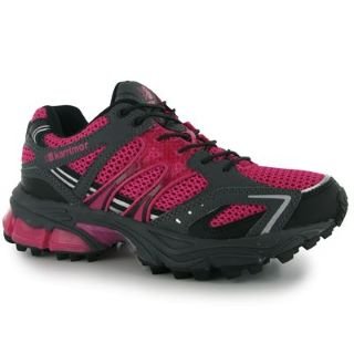 Karrimor X-TR Trail Running Shoes Ladies The Karrimor X-TR Trail Running Shoes are the perfect choice for your next run thanks to the ultra comfortable design including padded ankles and heels with gel cushioning in the heel for superb shock absorption. These ladies running shoes have deep lugs for substantial grip when on difficult terrain and the mesh upper allows the feet to breath. > Ladies trail running shoes > Lace up > Padded heel and ankles > Gel cushioned heel > Elasticated laces > Deep lugs for huge grip > Natural grooves to the outsole > Karrimor logos > Synthetic / mesh upper, textile inner, synthetic sole